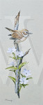 ID: 53440 House Sparrow & Primroses Acrylics 4 3/4 x 12£225 Reserve Picture